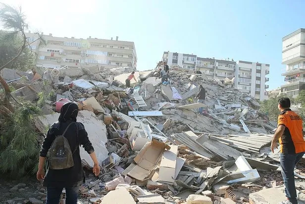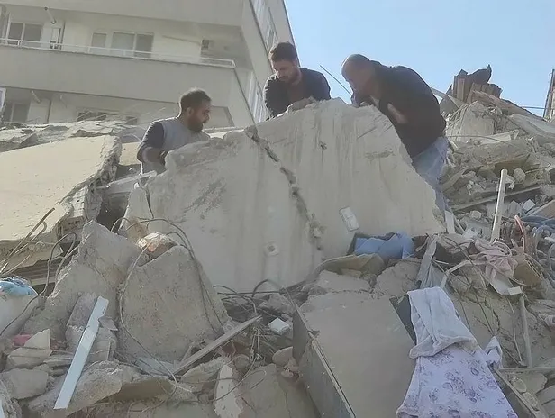 15.24: İzmir'in Bayraklı ilçesinde deprem nedeniyle çöken bir binada arama kurtarma çalışması başlatıldı.
