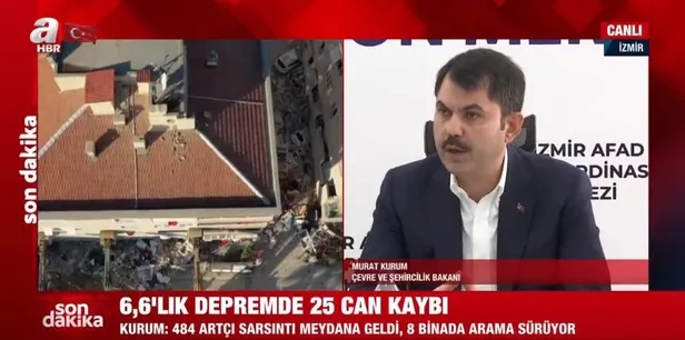 16.08: Murat Kurum'dan yeni açıklama: AFAD, Kızılay ve ilgili bakanlıklarımızın ekipleri İzmir'e intikal ediyor. Bölgede arama kurtarma ve enkaz kaldırma faaliyetleri yürütülüyor.