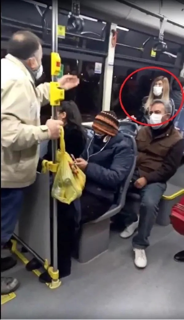 Test sonucunu yeni öğrendiğini ve yanındaki koltuğun boş olduğunu, gelenlere de 'oturmayın' dediğini söyleyen kadın, "Ben zaten sağlıkçıyım, hastanedeyim akşama kadar, insanlarla uğraşıyorum, 'yanıma oturmayın' diyorum insanlara" dedi ve rahatsız olanlara inmelerini söyledi. Bir yolcu ise "Siz ineceksiniz, burada 30 kişi var, biz neden iniyoruz? 'Yanıma oturmayın' diye bir şey mi var, arkanda insan oturuyor" diyerek tepki gösterdi. Yolculardan bazıları ise polis çağrılmasını istedi. Bu sırada şoför araya girerek, kadın ve yolcuları yatıştırdıktan sonra yola devam etti.