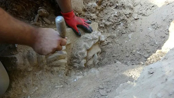 Kazı alanında bir kısmı kazılmış ve ucu dışarıda lahit bulundu. Jandarmanın durumu yetkililere bildirmesi sonucu bölge koruma altına alındı. Definecilerin kazı yaptığı yerde yapılan çalışmalarda 2 lahit mezar bulundu. Yaklaşık 2 bin 500 yıl öncesinde Roma dönemine ait olduğu tahmin edilen lahitlerin üzerinde ise Medussa kabartması dikkat çekti.