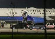 Pompeo, uçağa binişi öncesinde ziyaretleri sırasında kendisine eşlik eden güvenlik görevlileriyle fotoğraf çektirdi.