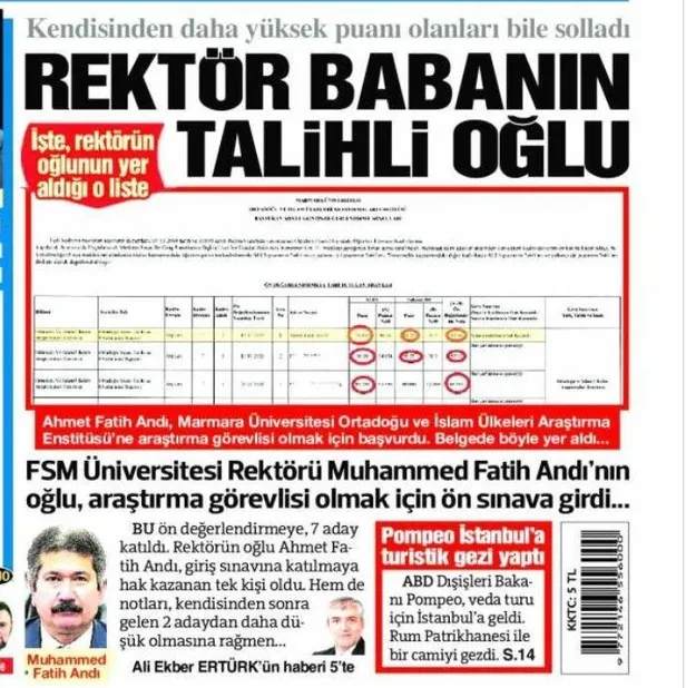 Son dakika... CHP yandaşı Sözcü Gazetesi'nin bir yalan haberi daha ifşa oldu. Fatih Sultan Mehmet (FSM) Üniversitesi Rektörü Muhammed Fatih Andı’nın oğlu Ahmet Fatih Andı, sosyal paylaşım sitesi Twitter hesabı üzerinden yaptığı açıklamada, Sözcü Gazetesi’ni yalanladı ve “İddialar gerçeği yansıtmamaktadır. Haber metni, Sözcü hempâsı başka haber platformlarında ekleme, çıkarmalarla yeniden tedavüle sokulmuş ve olay daha da çarpıtılmıştır. Sınava bile girmeden, Sözcü ve sosyal medya hesapları üzerinden sınavın yapıldığı, benim kazandığım şeklinde verilmiştir” dedi.