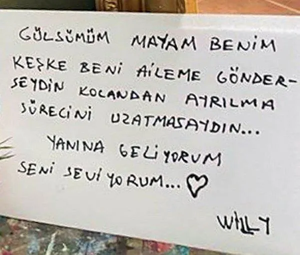 Resim öğretmeni Cem Yılmaz'ın, cinayetin ardından Gülsüm Taç'ın portresini çizdiği de ortaya çıktı. Yılmaz'ın, portreyi çerçeveletip evinin bir köşesine koyup, çiçeklerle süslediği, yanına da 'Gülsümüm mayam benim. Keşke beni aileme gönderseydin. Kocandan ayrılma sürecini uzatmasaydın. Yanına geliyorum, seni seviyorum' yazılı not bıraktığı belirlendi. Diğer yandan ikilinin, 4 yıl önce Amasya'da resim kursunda tanışıp arkadaşlık kurduğu, bir süre görüştükten sonra yollarını ayırdıkları, 1.5 yıl sonra yeniden görüşmeye başladıkları öğrenildi.
