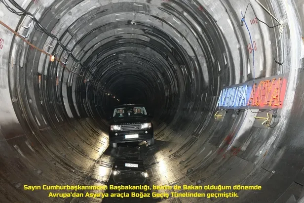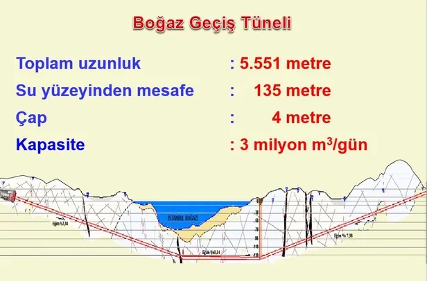 "12 Aralık 2012'de hizmete aldığımız Dev Boğaz Geçiş Tüneli, kıtaları aşan ilk içmesuyu tünelidir. Toplam uzunluk 5.551 metre Su yüzeyinden mesafe 135 metre, çap 4 metre, kapasite 3 milyon m3/gün.."