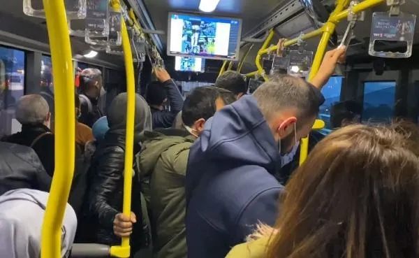 Durakta yığılmalar oluşurken vatandaşların metrobüste ayakta yolculuk yaptığı ve İstanbulluların İETT duraklarında beklediği görüldü.