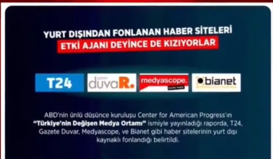 Center of American Progress'in Türkiye'nin Değişen Medya Ortamı isimli raporunda T24, Duvar, Medyascope ve Bianet gibi internet sitelerinin yurt dışı kaynaklı fonlandığı belirtildi.