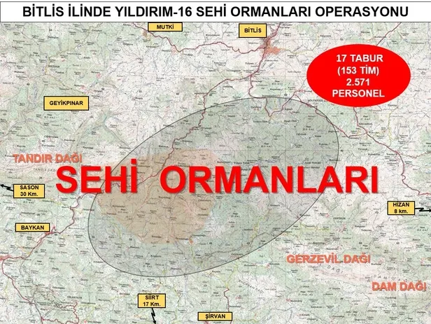 Kış üslenmesini gerçekleştiremeyen ve hareket kabiliyeti daralan, ülke içinde iletişimi ortadan kalkan bülücü terör örgütünün bu kabiliyetini bir daha elde edememesini sağlamak ve yurt içindeki terörist varlığını tamamen bitirmeye yönelik olarak Bitlis İl Jandarma Komutanlığınca "YILDIRIM-16 SEHİ ORMANLARI" operasyonu başlatılmıştır.