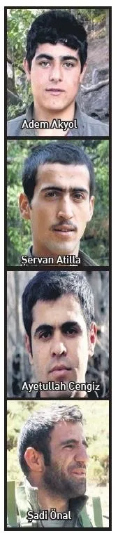 İnfaz edilen Argeş Piri kod adlı Şadi Önal, Mervan Serhat kod adlı Adem Akyol, Gelhat Beritan kod adlı Şervan Atilla ve Reşo Kuri kod adlı Ayetullah Cengiz'in fotoğrafları, teslim olan Behzat B. kod adlı terörist A.Ş. tarafından teşhis edildi.