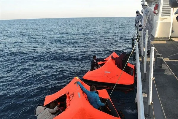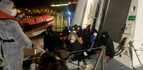 Foça ilçesi Aslan Burnu açıklarında Yunanistan unsurlarınca Türk karasularına bırakılan iki can salı içerisindeki 29 düzensiz kurtarıldı.
