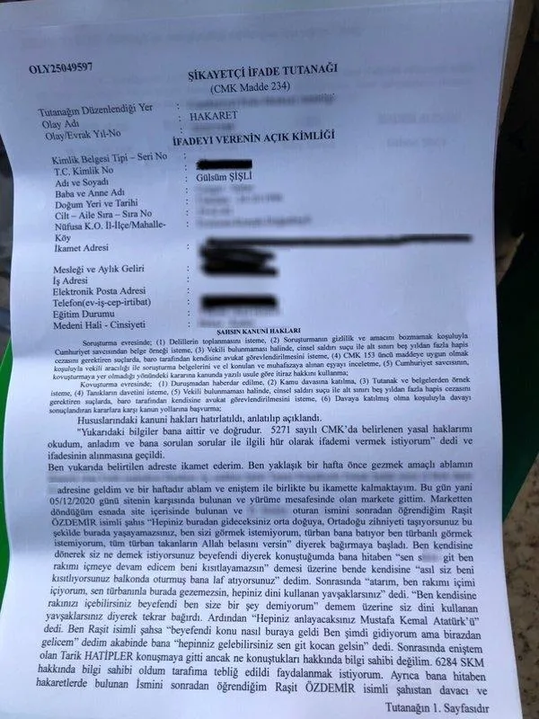 İddiaya göre, Gülsüm Şişli (24), İstanbul'dan ablasının ikamet ettiği Edirne'ye gitti. Edinilen son dakika bilgisine göre Şişli, burada alışveriş için sokağa çıktı. Kaldığı siteye döndüğünde ise apartmanlardan bir tanesinde balkonunda oturan saldırgan Raşit Özdemir'in kendisine, "Hepiniz buradan gideceksiniz Ortadoğu'ya. Ortadoğu zihniyeti taşıyorsunuz bu şekilde burada yaşayamazsınız, ben sizi görmek istemiyorum, türban bana batıyor ben türbanlı görmek istemiyorum, tüm türban takanların Allah belasını versin" diyerek bağırdığını söyledi.