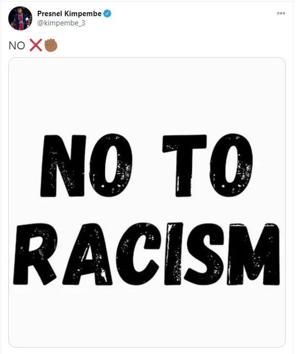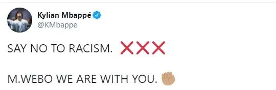 Mbappe, sosyal medya hesabından "Webo seninleyiz.", Kimpembe ise "Irkçılığa hayır." mesajını paylaştı.