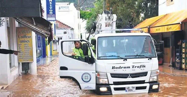 Bodrum'da sağanak yağışın sürüklediği atıklar, mazgalları ve kanalizasyonları tıkadı. Şehri sel aldı. Vatandaşlar, tahliye için saatlerce çalıştı. Belediye ekipleri de gece boyunca seferber olup, temizlik yaptı.