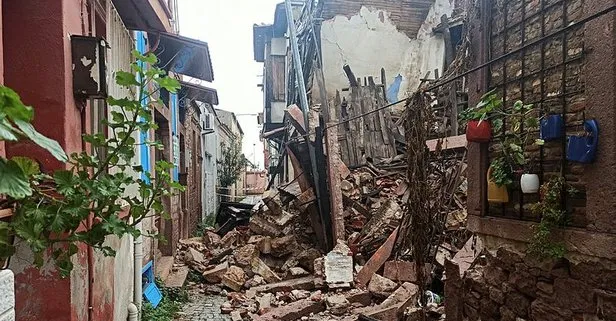 SON DAKİKA: Ayvalık'ta yağış nedeniyle 2 katlı bina yıkıldı!