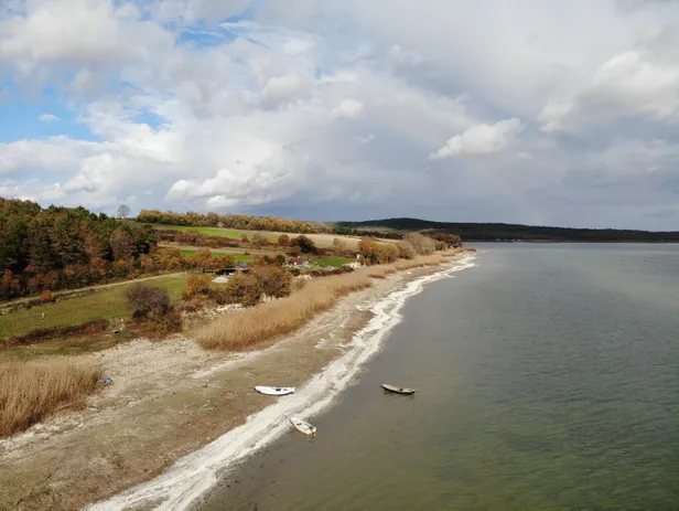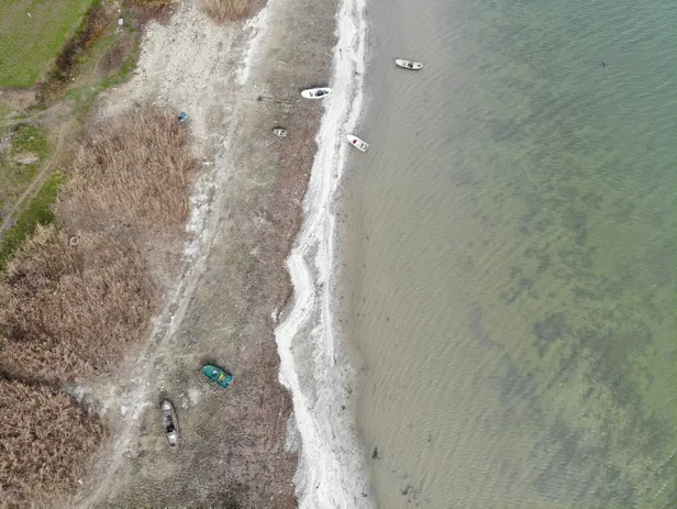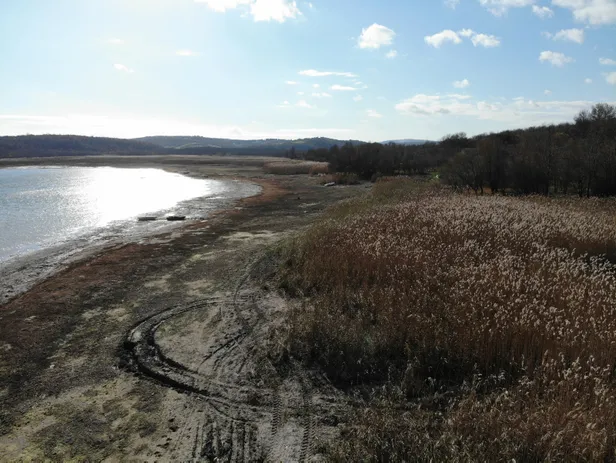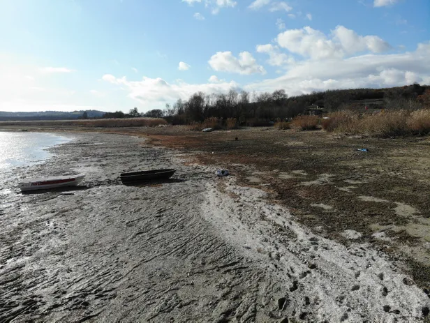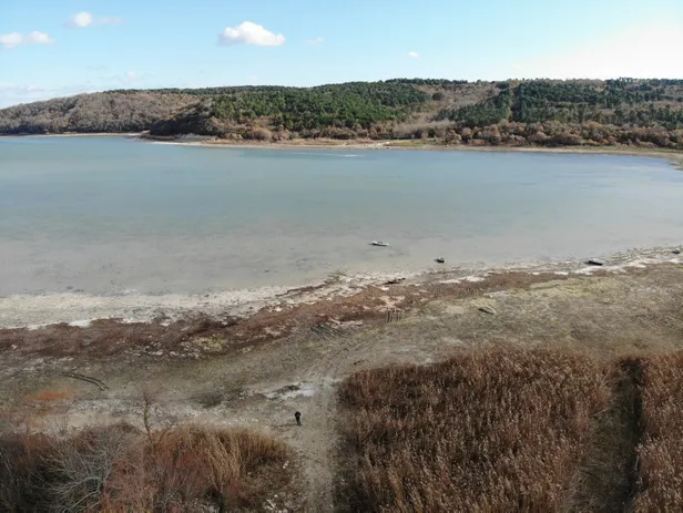 İstanbul'a su sağlayan önemli barajlardan Terkos Gölü'nde ise suların yüzlerce metre çekildiği görüldü. Korkutan görüntü drone kamerası ile havadan kaydedildi. Öte yandan normal zamanda suların içerisinde olan sazlıklar dışarıda kaldı.