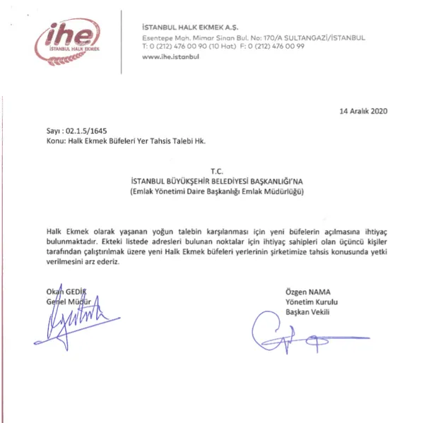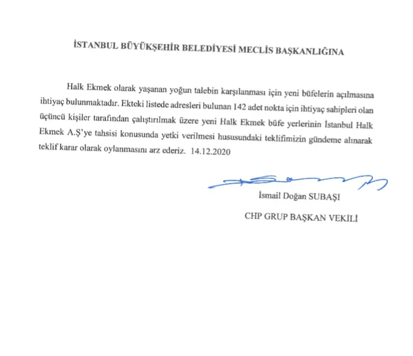 "2019 yılında yönetime geldiler, teklifte bulundular. Dosya görmekten hiç hoşlanmıyorlar. Bu teklifte Halk Ekmek büfelerinin sayısının arttırılması yok. Ekrem İmamoğlu'nun imzasının olduğu evrağı gösteriyorum. Alın bir okuyun. Bu teklifte Halk Ekmek büfelerinin arttırılmasıyla ilgili herhangi bir teklif yok. Halk Ekmek büfe yeri kurulmasıyla ilgili Halk Ekmek A.Ş'ye 'Meclis'e ait yetkileri devredin, biz daha sonra bakarız. Candaşlarımıza peşkeş çekeriz' teklifi var. Biz de demişiz ki, 'Getirin büfelerin listesini.' Mevcut büfelere biz izin verdik. 117 büfeyi aynen onayladık. İçinden bir tane bile değiştirmedik."