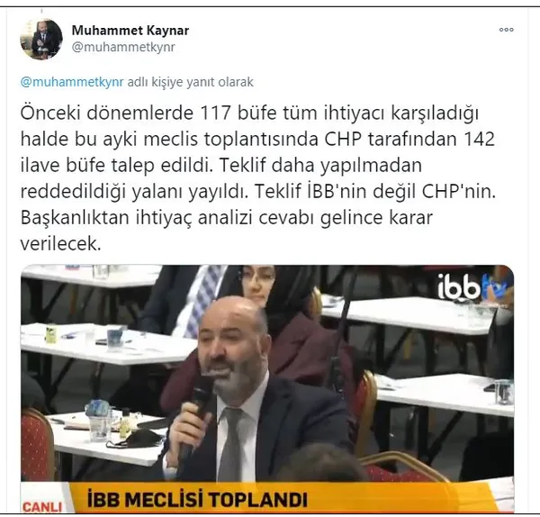 Muhammed Kaynar; İBB CHP Meclis Grubu Yönetim Kurulu Üyesi ve Grup Sözcüsü Tarık Balyalı'nın teklifini hatırlatarak, "İstanbul Büyükşehir Belediye Başkanı'na yakışmaz ama tam bir trol gibi davranıyor. Bırakın troll gibi davranmayı.. Ekrem İmamoğlu, 'Biz şehit ve gaziler için büfe yerleri ile ilgili konunun takibi olacağız' diyor. Niye başkanlık teklifi olarak gelmedi bu. Niye Cumhuriyet Halk Partisi teklifi? Bu teklifte hiçbir yerinde ne şehitten ne gaziden ne de engelliden bahsedilmiyor. Bir dahaki ay meclis gündemine bunu getireceğiz. Şehitlere gazilere buralar nasıl verilirmiş, bunun destanını buraya yazıp getireceğiz. Bu teklifte yok."