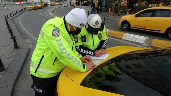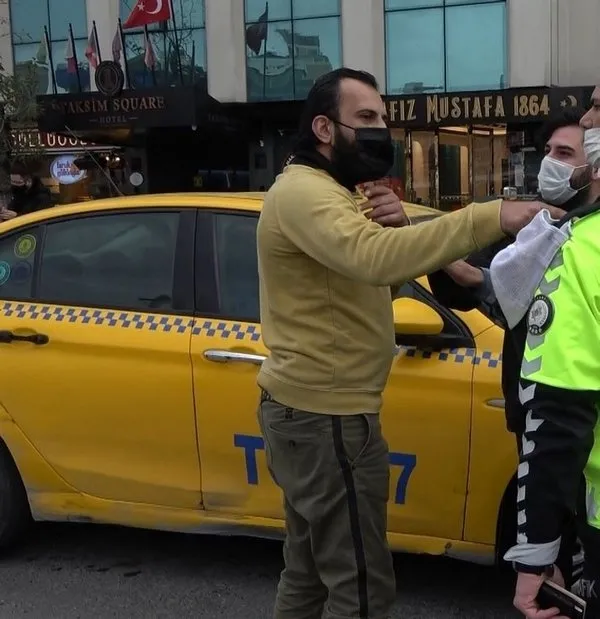 Öte yandan Sıraselviler Caddesi'nin girişinde bulunan uygulama noktasında ekipler, bir ticari taksiyi durdurup incelemek istedi. Araçtaki bir yolcunun maske takmadığını gören trafik polisi, kendisini maske takması konusunda uyardı.