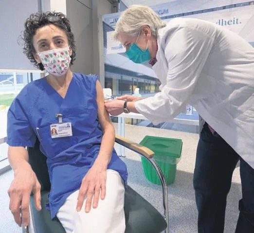 Almanya'da hemşire Zeynep Kallmayer, COVİD-19 aşısı uygulanan ilk Türk oldu. "Bağışıklık sistemim iyi. Bir ahırda doğmuşum. Yine de aşı oldum" diye konuştu.
