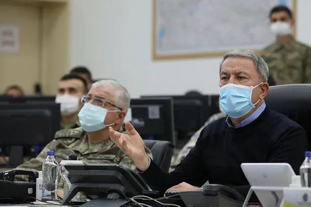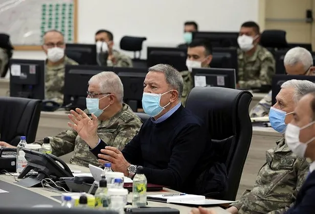 Harekat bölgeleri ve sınır hattında görevli birliklerin komutanları ile videokonferansla görüşen Akar, sahadaki son duruma ilişkin brifing aldı, talimat verdi.