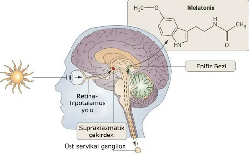 Aydınlık ve ışık ise melatonin üretimini azaltır ve vücuda uyanık olmaya hazırlanma sinyalini verir. Uyku sorunu olan bireylerde yaygın olarak düşük melatonin seviyelerine görülebilir.