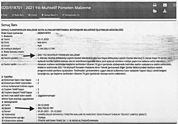 Ayrıca, 2021 yılının ilk israfı da yine İmamoğlu tarafından fazlasıyla yerine getirildi! İBB personelinin kullandığı çatal, bıçak ve tabaklar 955 bin lira gibi devasa bir rakama yenilendi. Yeni yılın ilk günlerinde apar topar yapılan ihale ise kafalarda soru işareti doğurdu.