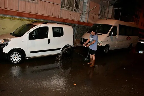Evinin bir kısmını su basan Serdar Kara da kendi imkanlarıyla evine dolan yağmur suyunu tahliye etmeye çalıştığını söyledi.