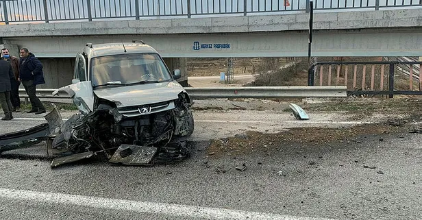 Afyonkarahisar'ın Çay ilçesinde hafif ticari araçla otomobilin çarpıştığı kazada araçlar hurdaya dönerken, şans eseri olayda ölen ya da yaralanan olmadı. Olayda çarpışmanın etkisi ile savrulan hafif ticari araç ise üst geçitten aşağı düşmekten çarptığı bariyerler sayesinde kurtuldu.