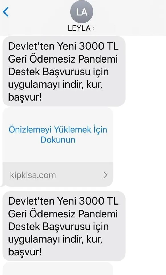 "Devletten geri ödemesiz 3 bin lira pandemi desteği" mesajına dikkat! Dolandırıcıların yeni oyunu