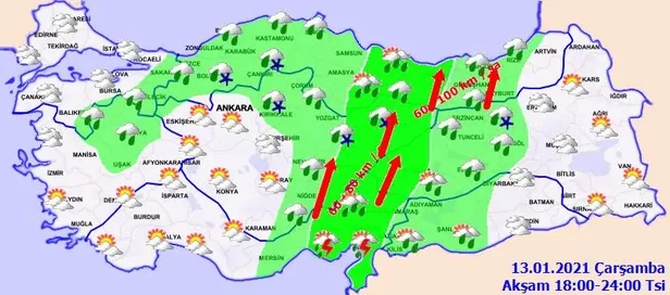 Parçalı çok bulutlu ve sağanak yağışlı zamanla karlakarışık yağmur ve kar yağışlı geçeceği tahmin ediliyor. Yağışların yerel olarak kuvvetli olması bekleniyor.