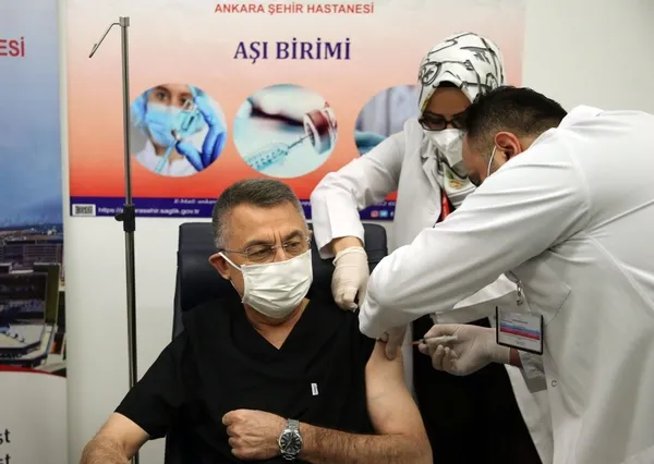 Türkiye'de COVİD-19'a karşı aşılama başladı. Cumhurbaşkanı Yardımcısı Fuat Oktay'a dün Ankara Şehir Hastanesi'nde CoronaVac aşısının ilk dozu uygulandı. Oktay, "Tüm vatandaşlarımıza gelip aşılarını yaptırmalarını tavsiye ediyorum" açıklaması yaptı.
