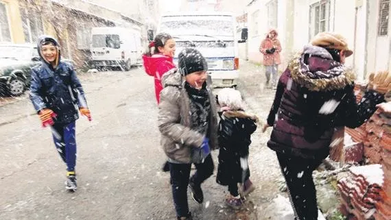 Balıkesir'de Edremit Körfezi, 4 yıl sonra yağan karla beyaza büründü. Çocuklar, kısıtlamaya rağmen sokağa çıkarak, kar topu oynadı.