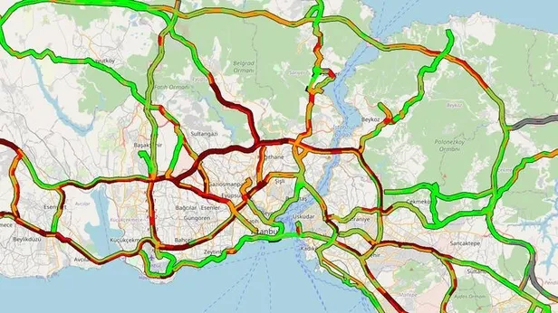 İBB CepTrafik uygulamasında kent trafiği yoğunluğu zaman zaman yüzde 85'e kadar çıkarken, 09.50 itibarıyla yoğunluk yüzde 78 olarak ölçüldü.