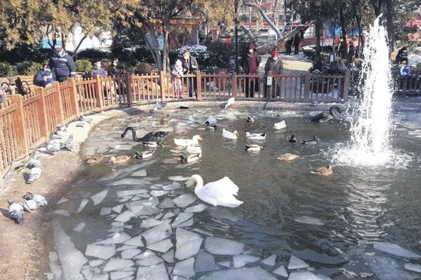 Başkentin simgelerinden Kuğulu Park'taki havuz, dondurucu soğuk nedeniyle buz tuttu. Kuğu, ördek ve kazların yaşadığı havuz temizlendi.