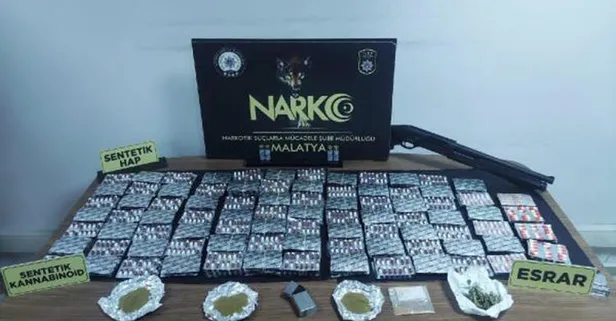 Son dakika haberleri... Malatya'da, polisin düzenlediği uyuşturucu operasyonunda gözaltına alınan 14 kişiden 13'ü tutuklandı. Adreslerde yapılan aramada 3 bin 400 uyuşturucu hap, 60 gram bonzai, 35 gram esrar, pompalı tüfek ele geçirildi.
