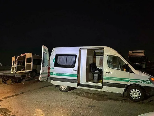 Gelen son dakika haberine göre, Balıkesir'in Bandırma ilçesinde akşam saatlerinde tavuk çiftliğinde çalışan işçileri taşıyan servis minibüsü ile TIR çarpıştı. Ortalık kan gölüne döndü.