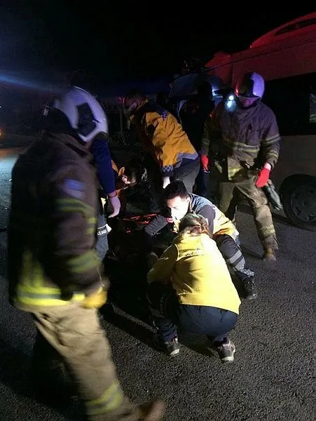 Kazayı gören vatandaşlar servis aracında sıkışan yaralıları kurtarmak için yardıma giderken durumu sağlık ekiplerine bildirdi. İhbar üzerine olay yerine çok sayıda sağlık, itfaiye ve jandarma ekibi sevk edildi. İtfaiye ekiplerinin çabası ile minibüste sıkışan işçiler çıkartıldı.