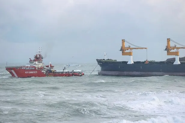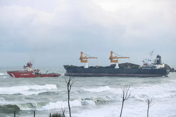 Nene Hatun Acil Müdahale gemisi boş kuru yük gemisine zincir bağladı. 10.30 sırlarında gemi bulunduğu yerden çekilerek açığa alındı.