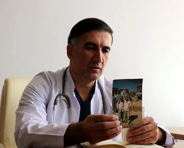 Van Bölge Eğitim ve Araştırma Hastanesi'nde çalışan doktor, öğrenciliğinde inşaatlarda çalışırken çekilmiş fotoğraflarına bakarken duygulandı. İmkansızlığın bahane olmayacağını gösterdi.