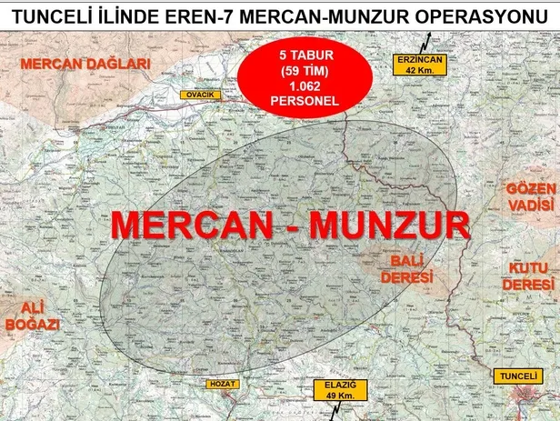 Bölücü terör örgütünü ülke gündeminden tamamen çıkarmak ve bölgede barındığı değerlendirilen teröristleri etkisiz hale getirmek maksadıyla Tunceli ilinde "EREN-7 MERCAN-MUNZUR" Operasyonu başlatıldı.