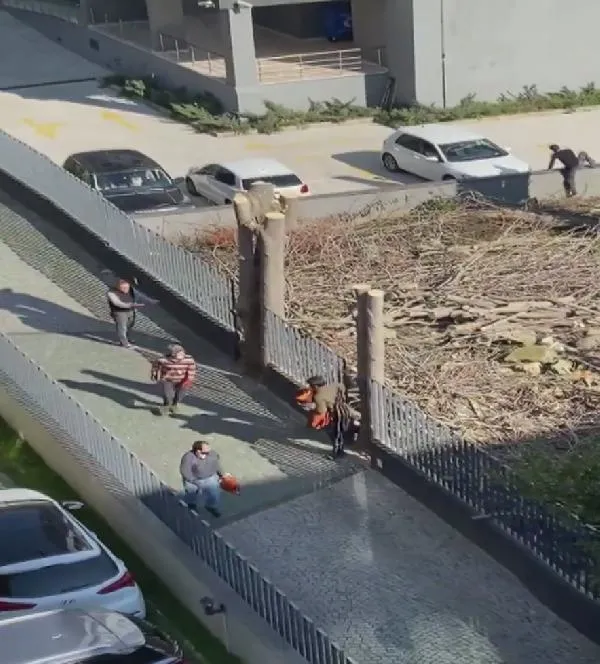 Bir mahalle sakini, "Dün sözde budamaya geldiler, izinleri yoktu. Tepki gösterdik. Zabıta ve polis gelince 'gidiyoruz' diyerek ayrıldılar. Bugün de gelerek büyük bir öfke ile ağacı kökünden testereyle kestiler. Sözde bu inşaatın elemanları. Çok eski ve değerli bir çam ağacı. Suç olduğunu bildikleri için kaçtılar" diye konuştu.