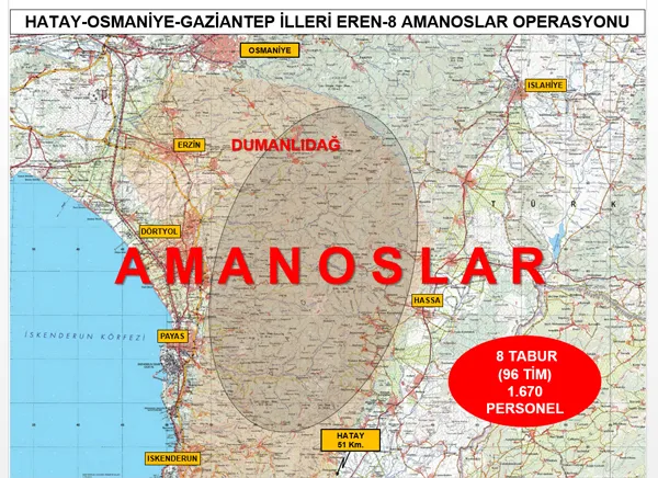 Bölücü terör örgütünü ülke gündeminden tamamen çıkarmak ve bölgede barındığı değerlendirilen teröristleri etkisiz hale getirmek maksadıyla "EREN-8 AMANOSLAR" Operasyonu başlatıldı.