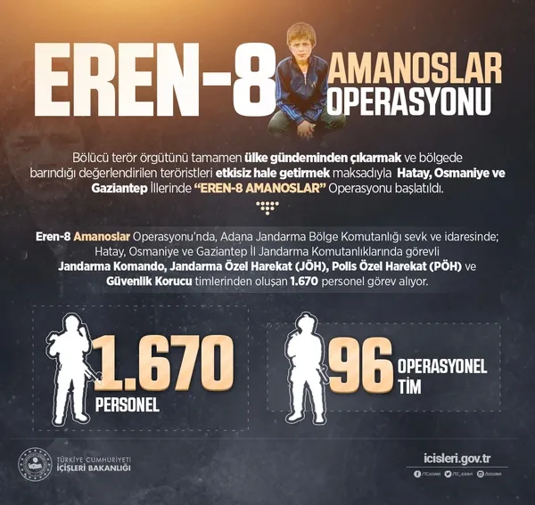 İçişleri Bakanlığı duyurdu! Eren-8 Amanoslar Operasyonu başladı!