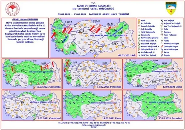 Öte yandan Meteoroloji Genel Müdürlüğü tarafından paylaşılan 9-15 Şubat haftalık hava tahmini ise şu şekilde yer aldı: