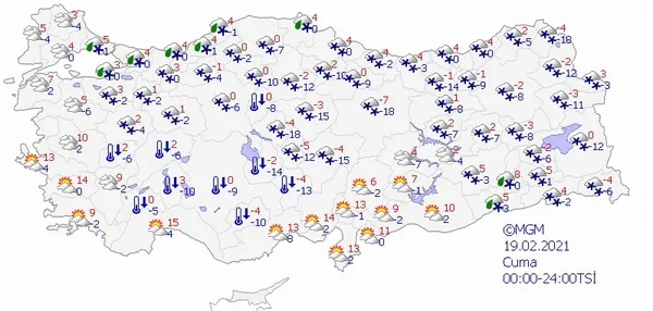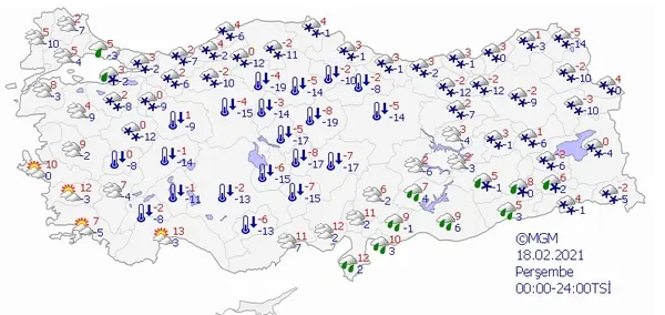 18 ŞUBAT 2021 PERŞEMBE TÜRKİYE GENELİ HAVA DURUMU