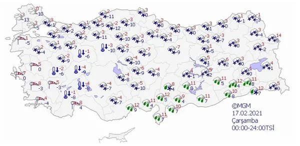 17 ŞUBAT 2021 ÇARŞAMBA TÜRKİYE GENELİ HAVA DURUMU