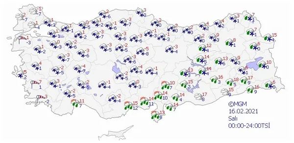 16 ŞUBAT 2021 SALI TÜRKİYE GENELİ HAVA DURUMU