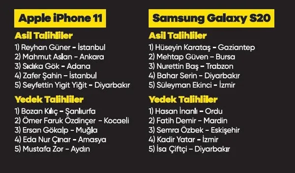 Kazananlar Alcatel 3T8, Apple iPhone 11, Samsung Galaxy s20, Samsung Galaxy A11, Alcatel 1T7 gibi ödüller ile müjdelendiler.