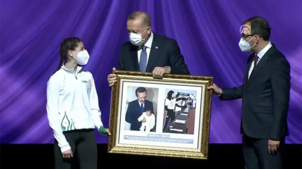 Başkan Recep Tayyip Erdoğan, Milli Sporcu Bursu Tanıtım Toplantısı'nda konuştu. Konuşmanın sonunda sporcularla birlikte hatıra fotoğrafı çektiren Başkan Erdoğan büyük bir sürprizle karşılaştı. Erdoğan'ın 2003 yılında Rize'de açılışını yaptığı hastanede doğan Selen Gülel, 18 yıl sonra Erdoğan'ın karşısına modern pentatlonda Türkiye birincisi ve dünya üçüncüsü milli sporcu olarak çıktı.