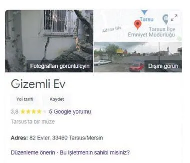 Sonradan bina dikilen ev ise Google Haritalar'a 'Gizemli ev' olarak girdi. Tarsus'un merkezinde olan ev, haritada araştırma yapan kişilerin gözüne çarpıyor. Vatandaşlar, şaşırıyor.