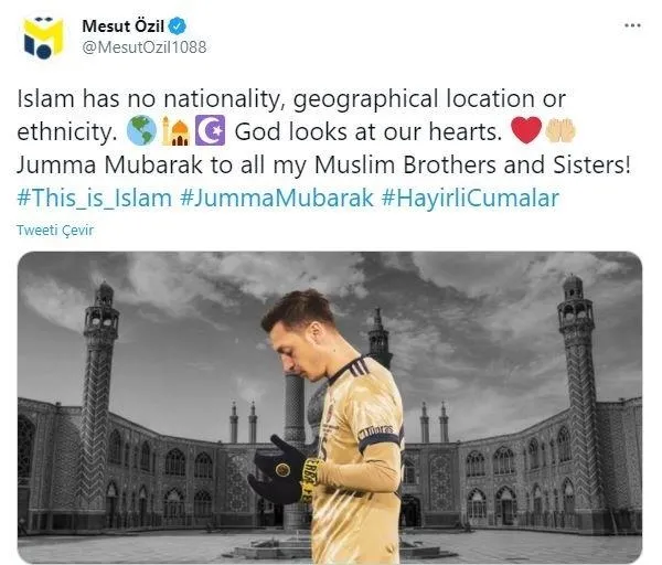 Geçtiğimiz hafta yaptığı Cuma paylaşımında Hindistan'dan bir cami görseli koyan Fenerbahçe'nin yıldızı Mesut Özil, hazımsız Fatih Altaylı tarafından yersiz bir şekilde eleştirilmişti. Mesut Özil bir hafta sonra yine Cuma paylaşımıyla gündeme geldi.